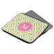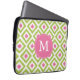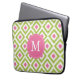 Monogrammed Pink Green Diamond Ikat Pattern Laptop Sleeve