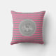 Monogrammed Pink Grey Striped Pattern Throw Pillow