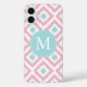Monogrammed Pink Mint Diamond Ikat Pattern Case-Mate iPhone Case