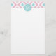 Monogrammed Pink Mint Diamonds Ikat Pattern Stationery