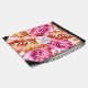Hot pink to orange tropical palm fronds on a white background ready for your monogram in chic lettering on a white circle on the front in any color (can be deleted or moved on the layout.) Create for yourself or give as a gift.