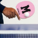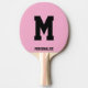 Personalized name or monogram ping pong paddle for table tennis. Sports game gift idea for men, women and kids. Monogrammed letter initial design. Custom pink background color. Fun for player and school coach. College dorm accessories.