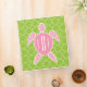 A gift featuring an illustration of a pink sea turtle. Personalize with your monogram on turtle's shell. Background is lime green quatrefoil pattern.