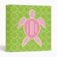 Monogrammed Pink Sea Turtle Green Quatrefoil Binder