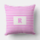 Monogrammed Pink/White Stripes Throw Pillow