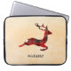 Modern black and red plaid deer over a gradient beige background. Optional monogram