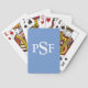 Our beautiful playing cards are waiting for you monogram with a periwinkle blue background and whimsical crisp white typography font.