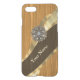 Personalized brown pine wood rustic faux wood grain and pretty feminine chic elegant modern gold swirl graphic and girly vintage diamond crystal rhinestone bling jewels. Easily add your name or monogram initials to create your own custom monogrammed design for her. PLEASE NOTE the golden color is not metallic.