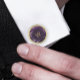 Monogrammed Purple Agate Gold Round Cufflinks
