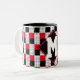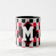 Monogrammed red and black checkerboard pattern Two-Tone coffee mug