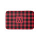 Monogrammed Red Black Buffalo Plaid Pattern Bath Mat