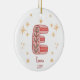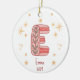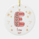 Celebrate your Baby Girl's First Christmas with Initial E Ceramic Ornament. Featuring a large initial "E" on the front, you can customize it with your baby's name and the year to make it a treasured holiday decoration. The back includes space for a family photo, creating a heartfelt keepsake. Add to cart and cherish this special moment!