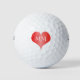 This monogrammed heart design golf ball is white and dimpled, with a diameter of at least 1.680 inches (42.67 mm) and a mass no more than 1.620 ounces (45.93 grams). The dimples on the surface are crucial for aerodynamics, reducing drag and allowing the ball to travel farther. Golf balls are designed with multiple layers to optimize distance, spin, and feel. Heart design golf ball