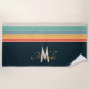 Monogrammed Retro 70s Navy Blue & Colorful Sripes Beach Towel