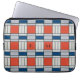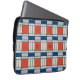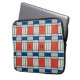 This laptop sleeve features a retro geometric pattern in red, blue and light grey. Personalize it with your monograms in black.