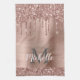 Modern, girly rose gold glitter drips name and monogrammed kitchen towel. This design features blush pink rose gold glitter sparkle drips on pink brushed metal background with custom personalized monogram initial and first name text template. Perfect feminine gift. Please note, this design is printed photo effect. If you need help or matching items, please contact to me.
