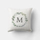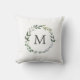 Monogrammed Sage Green Leaves Greenery Wreath Throw Pillow