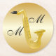 Monogrammed Saxophone Gold Coloured Round Paper Coaster