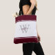 Girly modern minimalist script personalized trendy monogram tote bag. The elegant burgundy stylish script matches the line design in color but offsets it in style, creating a fun twist to the minimalist look.