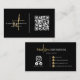 Monogrammed Script Typography Black Gold QR Code Business Card