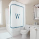 Monogrammed Shower Curtain. If you're looking for a modern, monogrammed shower curtain that exudes class and sophistication, then you'll love our elegant blue and white shower curtain. Featuring a classic, stylish stripe pattern, this eye-catching curtain will look great in any bathroom.