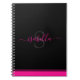 Simple modern script personalized notebook for your journaling. The elegant hot pink stylish script matches the line design in color but offsets it in style, creating a fun twist to the minimalist look on black.