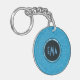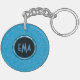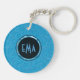 Monogrammed Sky Blue Embossed Floral Pattern Keychain