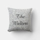 This silvery throw pillow has a sparkly faux finish and your monogram or family name written in a fancy script. No glitter or sequins are used in the making of this pillow, so you have all the glam and the pillow is still soft to the touch.