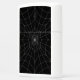 A dramatic vector designed spiderweb in a stark, minimalist black and white graphic style. It is monogrammed with the initials J S. A fully editable template.