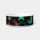 This is a heavy, durable bowl decorated with Tibbies of many colors, the perfect size for hungry/thirsty Tibs. The design is interesting and printing clear.