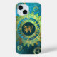 Monogrammed Steampunk Verdigris Rusty Cogwheel Case-Mate iPhone Case