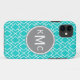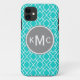 Monogrammed Stylish Teal Blue Diamond Pattern Case-Mate iPhone Case