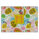 Your monogram initial is featured on this glass cutting board featuring a modern fruit pattern of pineapples, pears, oranges, cherries, papaya, grapes, kiwis and peaches. MATCHING items in our collection.