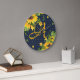 Monogrammed Sunflowers Navy Blue Yellow Modern Large Clock