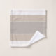 It's a classic. Color blocking in various shades of taupe and linen with white dividers and monogram at base of towel. Available in a variety of shades.