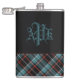 Carry a touch of your favorite drink (alcoholic or not) in this flask done in a teal, aqua, red & black plaid and monogrammed. Use the personalize option to add your own initials. Check the Drinkware category in my store for other flask designs both monogrammable or with customizable text.