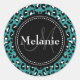 Monogrammed Teal Black White Leopard Pattern Classic Round Sticker