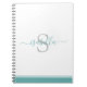 Monogrammed modern script personalized notebook for your journaling. The elegant teal stylish script matches the line design in color but offsets it in style, creating a fun twist to the minimalist look.