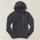 Monogrammed three initial block font embroidered women's hoodie. You can change the color of the embroidery and also change it to your initials. You can also change the position of the monogram.