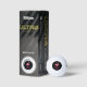 Tropical pink flamingos monogrammed golf balls with image of a cute flamingo on a black background with hot pink name initials as a monogram you can customize online. Designed as a birthday gift for female golfers who enjoy playing the sport of golf.