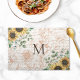 Introducing our Monogrammed Vintage Rustic Sunflower Decoupage Placemat. Featuring watercolor illustration of sunflowers, eucalyptus leaves, and vintage old letter. Suitable for nature themed occasion.