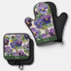 Monogrammed Violet Flowers Pretty Floral Patterned Oven Mitt & Pot Holder Set