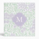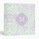 Monogrammed Violet Green Floral Damask Pattern Binder