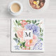 Monogrammed Watercolor Blue Pink Spring Floral Acrylic Tray