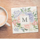 Monogrammed Watercolor Blue Pink Spring Floral Stone Coaster