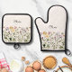 Monogrammed Watercolor Wildflower Garden Oven Mitt & Pot Holder Set