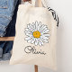 Elevate your style with our Monogrammed White Daisy Floral Tote Bag. Features doodle art of white daisy flower, add a cute boho chic touch. Make it a great gift for flower loving girls.