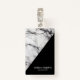 Modern white marble stone texture with black grain and triangle. Optional monogram