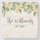Monogrammed Yellow Lemon Tree White Wood Stone Coaster