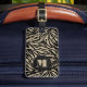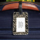 A stylish luggage tag features your monogram initial on a beige and black wild animal print pattern on the front and your address information printed on the back OR choose the style you can insert your business card on the back. Create for yourself or give as a gift. MATCHING drawstring bag and more items in our travel collection.